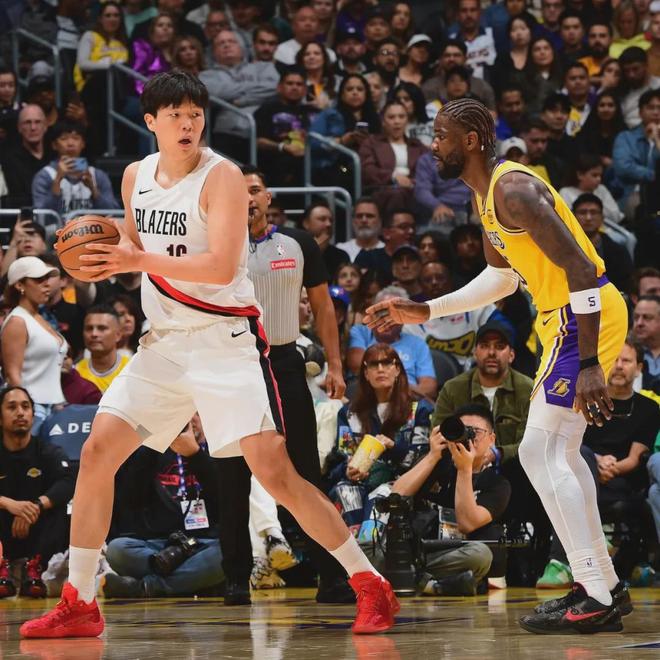 湖人首发:里夫斯、拉拉维亚、范德比尔特、八村塁、艾顿;开拓者首发:霍勒迪、夏普、阿夫迪亚、卡马拉、克林根。罗威今天被下放到发展联盟训练,距离复出不远了。第一节还剩6分55秒,杨瀚森替补登场,三分线外2中0。