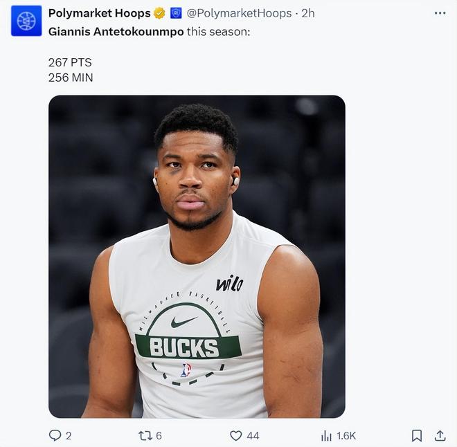 数据媒体PH晒出扬尼斯本赛季256分钟拿到267分,这个得分效率过于恐怖。