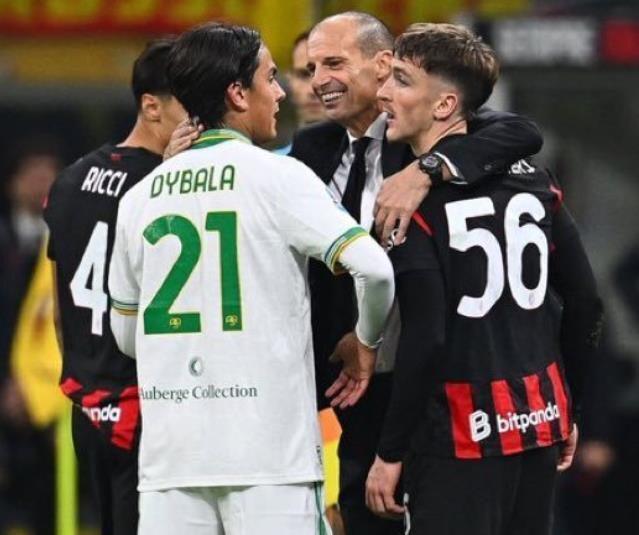本场比赛,米兰众将士们欢呼雀跃,而对于迪巴拉来说,今日罚丢这粒点球,不仅造成自己大腿拉伤,甚至还成为球队的罪人。毕竟从圣西罗带走积分,与一场失利对于红狼军团来说,完全是两回事。要知道,迪巴拉本赛季之前3次点球全部命中,他上一次在俱乐部罚丢点球还是在2021年。2021年12月1日意甲联赛,尤文客场2比0战胜萨勒尼塔纳,迪巴拉在补时阶段主罚点球时脚下打滑,将球踢飞,错失扩大比分机会。近5年没有罚丢点球的阿根廷前锋,在最关键的一场比赛中,没能点球命中,真是无法令红狼球迷接受。